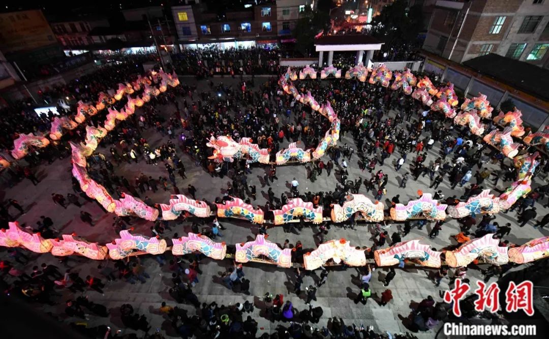 連城林坊游龍,村民們抬著色彩繽紛的大龍環(huán)著村道游走鬧新春。游大龍活動(dòng)是林坊林氏家族傳統(tǒng)文化藝術(shù)活動(dòng)的遺產(chǎn),有500多年歷史,意在祈求風(fēng)調(diào)雨順、國(guó)泰民安。中新社記者 王東明 攝