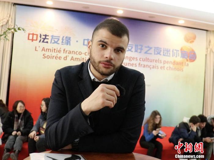 法國人民援助會全國委員會委員、本次青年代表團團長朱利安·維蘭(Julien Villain)接受中新網(wǎng)記者采訪。中新網(wǎng)黃方 攝