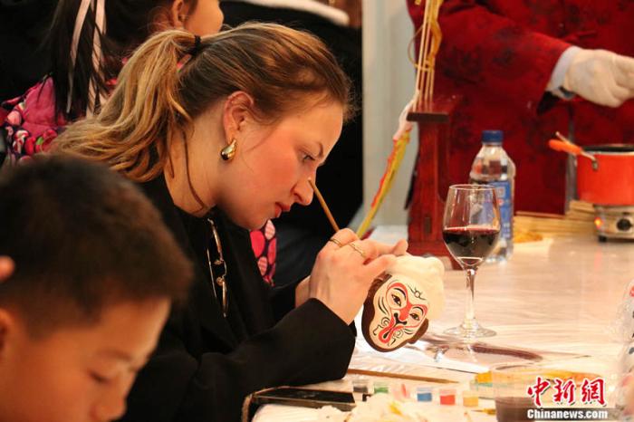 表演結(jié)束后,主辦方還準備了迷你廟會體驗活動,畫臉譜、吹糖人等傳統(tǒng)民俗活動吸引了眾多法國青少年圍觀。“我愛中國!”他們表示,雖然來到中國的時間尚短,但已經(jīng)感受到中國文化的魅力。