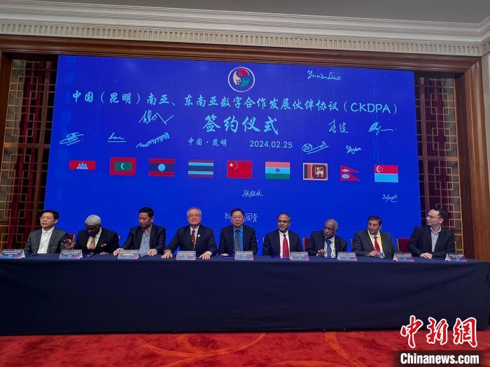 圖為中國(guó)(昆明)南亞、東南亞數(shù)字發(fā)展合作伙伴協(xié)議(CKDPA)簽約儀式現(xiàn)場(chǎng)。時(shí)文枝 攝