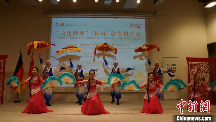 推介會現(xiàn)場還設置了陜西特色文創(chuàng)產(chǎn)品展示區(qū),展出農民畫、剪紙、石雕、泥塑、棗木雕等非遺產(chǎn)品,讓與會嘉賓親身體驗陜西的民間藝術和傳統(tǒng)技藝。來自陜西的藝術家們?yōu)閬碣e們表演了陜北大秧歌、腰鼓,演唱了《山那邊》《趕牲靈》《淚蛋蛋拋在沙蒿蒿林》《一對對鴛鴦水上漂》等極富特色的陜北民歌。推介會上來賓們交流探討陜西與德國在文化旅游領域的合作機遇和發(fā)展前景,氣氛熱烈。