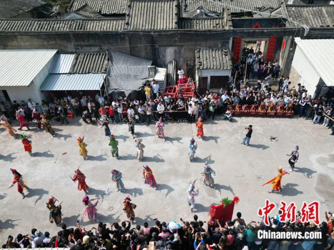 2024年2月20日,廣東潮州溪美寨村舉行傳統(tǒng)游神民俗活動(dòng),巡游隊(duì)伍的英歌舞表演吸引民眾觀看。陳楚紅 攝