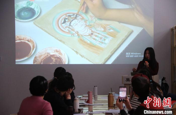 2023年2月,在敦煌研究院莫高學(xué)堂,研學(xué)導(dǎo)師給學(xué)員講授敦煌壁畫臨摹技法。 張曉亮 攝
