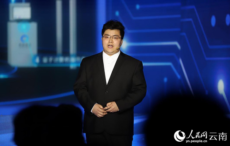 本源量子計算科技(合肥)股份有限公司市場運營總監(jiān)俞書林介紹量子計算。人民網(wǎng)記者 李發(fā)興攝