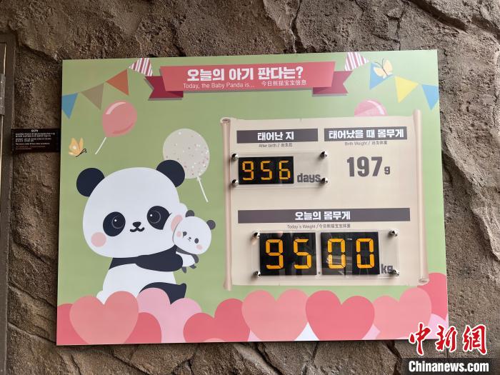 資料圖:愛(ài)寶樂(lè)園熊貓世界內(nèi)展示“福寶”當(dāng)日體重的信息牌。中新網(wǎng)記者 劉旭 攝