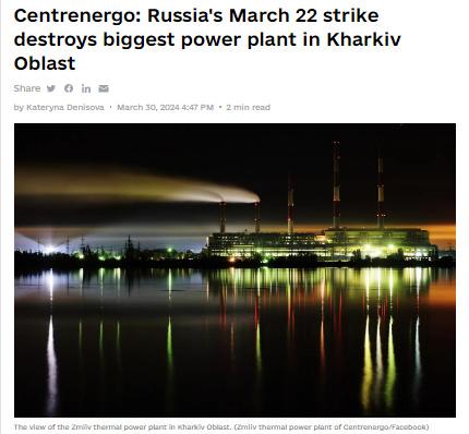 中新網(wǎng)3月31日電 據(jù)《基輔獨立報》當(dāng)?shù)貢r間30日援引烏克蘭能源公司消息,烏東部最大發(fā)電廠、位于哈爾科夫州的茲米耶夫火力發(fā)電廠已在俄軍22日的導(dǎo)彈襲擊中被摧毀。