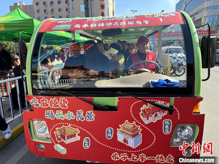 3月25日,游客乘坐的天水麻辣燙志愿服務(wù)車。 戴文昌 攝