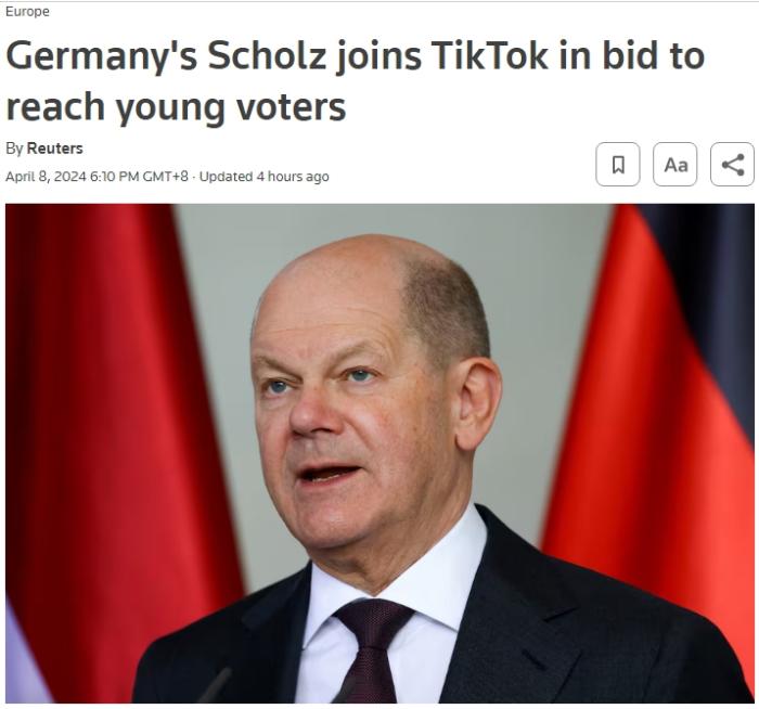 報(bào)道稱,朔爾茨加入TikTok是為吸引年輕選民。兩個(gè)月前,美國總統(tǒng)拜登也正式加入了TikTok。