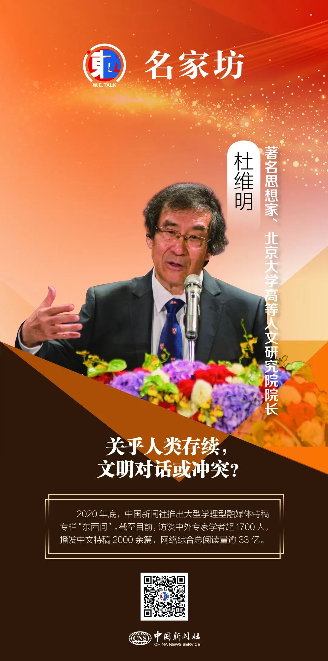 “文明對(duì)話還是沖突,是世界正在面臨的重大選擇。這不僅是文化間的選擇,更是關(guān)乎人類存續(xù)的選擇?!北本┐髮W(xué)高等人文研究院院長杜維明如是說。