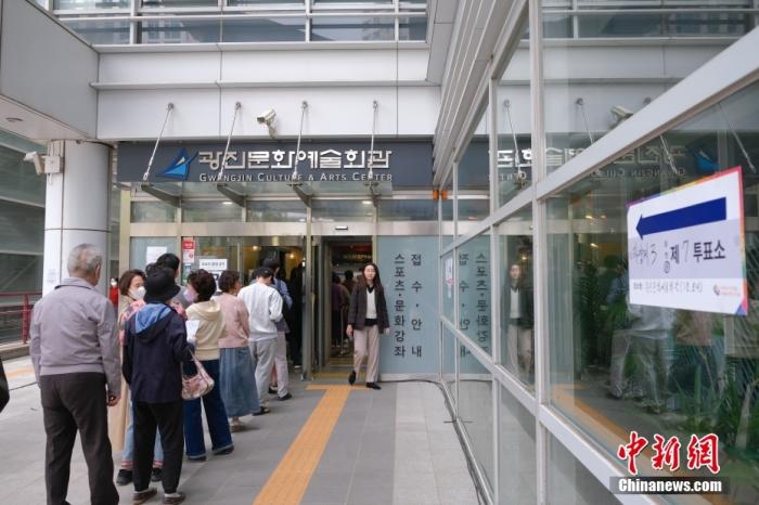 當(dāng)?shù)貢r間4月10日,韓國第22屆國會議員選舉啟動正式投票,各政黨候選人將角逐國會300個議席。圖為選民排隊進(jìn)入首爾市廣津區(qū)一處投票站。