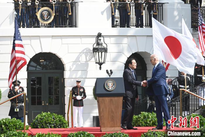 當?shù)貢r間4月10日,美國總統(tǒng)拜登與來美國事訪問的日本首相岸田文雄在白宮舉行會晤。圖為雙方出席白宮歡迎儀式。中新社記者 陳孟統(tǒng) 攝