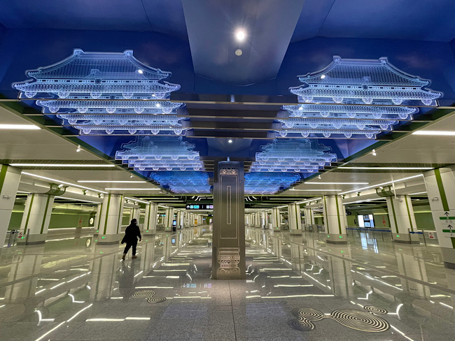 在車站裝修方面,地鐵19號(hào)線車站在裝修設(shè)計(jì)中突出“薈萃京華”的總體設(shè)計(jì)概念,在車站風(fēng)格中體現(xiàn)北京傳統(tǒng)與現(xiàn)代精華,全線站廳通道口、換乘通道及站臺(tái)樓扶梯三角房處以突出導(dǎo)向性和識(shí)別性為原則進(jìn)行重點(diǎn)裝修。以“鳳凰于飛—鳳祥燈會(huì)”為設(shè)計(jì)主題的新發(fā)地站、繪有“雙鯉戲水”的積水潭站、加入牡丹和景泰藍(lán)元素的牡丹園站……乘客可在各站感受到多元化的“地鐵藝術(shù)”。