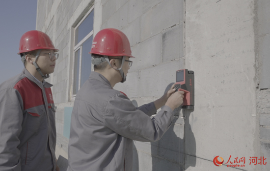 雄東項目管理部人員對500千伏配電裝置樓框架柱鋼筋保護(hù)層厚度進(jìn)行專項檢測。 穆靖攝
