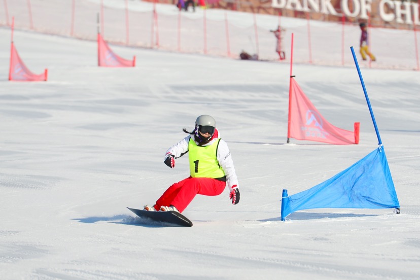當(dāng)天上午9點20分,大眾滑雪組單板滑雪大回轉(zhuǎn)比賽正式開始。賽場上,選手們速度與技巧的完美結(jié)合,博得了在場觀眾陣陣喝彩。隨后進行的高山滑雪大回轉(zhuǎn)比賽也同樣精彩。選手迅速沖出起點,雙手緊握雪杖用力后撐,加速向前滑行,靈巧地在賽道上轉(zhuǎn)變滑行方向,從一個個旗門中輕巧地回轉(zhuǎn)而過,每一次急停和回轉(zhuǎn),都濺起一簇簇潔白的雪花。