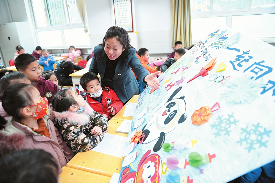 1月6日,太原市第二實(shí)驗(yàn)小學(xué),孩子們在與老師的互動(dòng)中學(xué)習(xí)知識(shí)。該校積極響應(yīng)“雙減”政策,為一、二年級(jí)學(xué)生開展“巧娃迎冬奧”等主題綜合素質(zhì)大比拼,讓孩子們在動(dòng)手、動(dòng)腦、小組合作中輕松快樂地開展自主、合作、探究性學(xué)習(xí)。(記者阮洋攝)