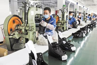 在張家口高新區(qū)冰雪運(yùn)動(dòng)裝備產(chǎn)業(yè)園,工人在一家冰球鞋生產(chǎn)企業(yè)車間工作。新華社發(fā)