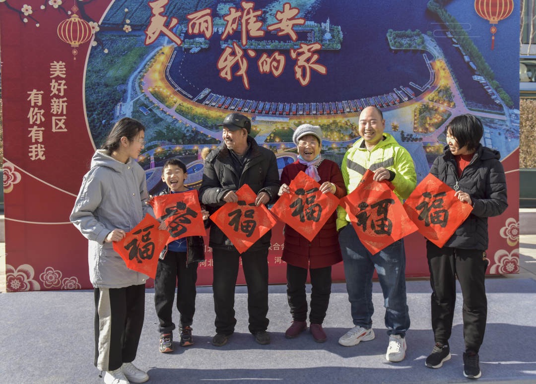 1月10日,河北文藝界“送福進萬家”文化惠民暨采風創(chuàng)作活動走進雄安,省文聯(lián)組織30名書法、攝影藝術家深入雄安容東回遷安置片區(qū),為第一批喬遷新居的容東市民送去6000余副春聯(lián)、福字,為市民拍攝“全家?!?。