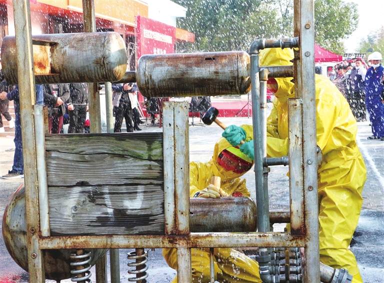 湖州市安吉縣應急管理局近日聯(lián)合安吉縣總工會開展全縣首屆?;髽I(yè)應急救援隊伍技能比武,20支?;髽I(yè)應急救援隊伍80余人參加。比賽內(nèi)容包括原地油桶滅火單項賽、消防堵漏作業(yè)團體賽等。(徐薇、王豆豆)