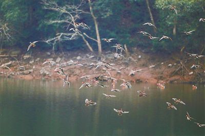 生態(tài)環(huán)境部南京環(huán)境科學研究所鳥類專家崔鵬研究員介紹,鴛鴦對棲息地生態(tài)環(huán)境要求極高,是濕地及河流湖泊生態(tài)系統(tǒng)環(huán)境質量評價的重要指示物種,此次拍攝到大規(guī)模野生鴛鴦種群在四明山區(qū)域越冬,表明這里優(yōu)良的自然條件為鴛鴦等鳥類生存繁衍提供了豐富的食物資源和良好的棲息環(huán)境。