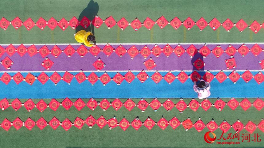 人民網(wǎng)石家莊1月22日電 近日,河北省唐山市豐潤區(qū)泉河頭鎮(zhèn)羅文口小學(xué)書法小組的學(xué)生們,來到羅文口村書寫春聯(lián)和“?!弊?,把新春祝福送給村民。(朱大勇)