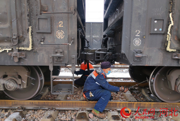 人民網(wǎng)石家莊1月28日電 春節(jié)臨近,當旅客們坐上列車,準備與家人團聚時,有這樣一群人默默地為平安春運保駕護航,他們是專為鐵路車輛“診病療傷”的鐵路車輛檢車員。
