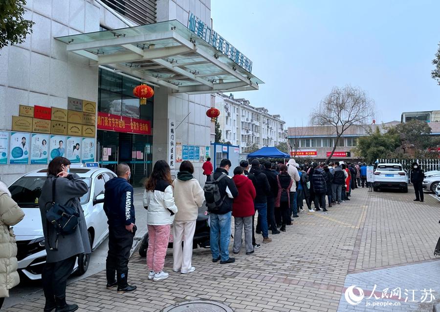 16日上午,仙鶴門衛(wèi)生服務(wù)中心核酸檢測點前排起了長隊,市民未保持相對安全距離。人民網(wǎng) 馬曉波攝
