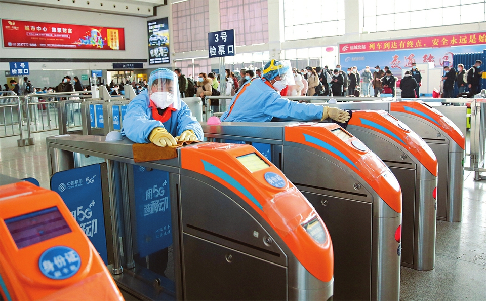 近期,面對(duì)學(xué)生流、節(jié)后探親返程流、務(wù)工流“三流”疊加,運(yùn)城北站一手抓疫情防控,一手抓旅客組織,加強(qiáng)候車廳常態(tài)化疫情消殺制度,傾力確保旅客運(yùn)輸平穩(wěn)有序。(王文華攝)