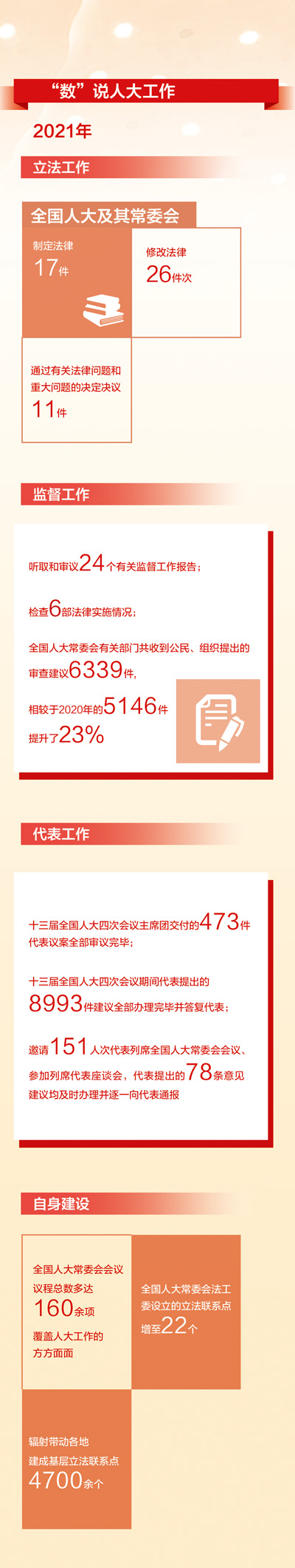 過去一年,一組組亮眼數(shù)據(jù)折射出我國立法工作取得的沉甸甸成績,體現(xiàn)立法工作堅持黨的領(lǐng)導、體現(xiàn)人民意志、回應(yīng)社會關(guān)切,堅持科學立法、民主立法、依法立法,充分發(fā)揮法治固根本穩(wěn)預(yù)期利長遠的保障作用。