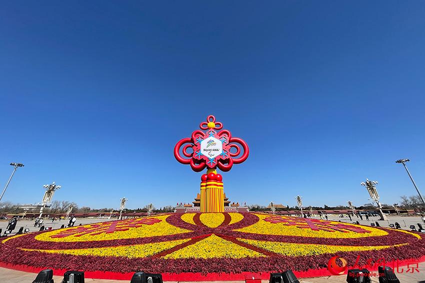 人民網(wǎng)北京3月1日電 (尹星云)日前,天安門廣場“精彩冬奧”主題花壇中國結(jié)南北兩面完成了冬殘奧會會徽更換。據(jù)北京冬奧會城市運行及環(huán)境保障組辦公室消息,按照《2022年北京冬殘奧會賽時城市景觀布置工作方案》要求,2月21日至2月28日全市有序開展由冬奧會向冬殘奧會城市景觀布置的轉(zhuǎn)換工作,確?!皟蓚€奧運 同樣精彩”。
