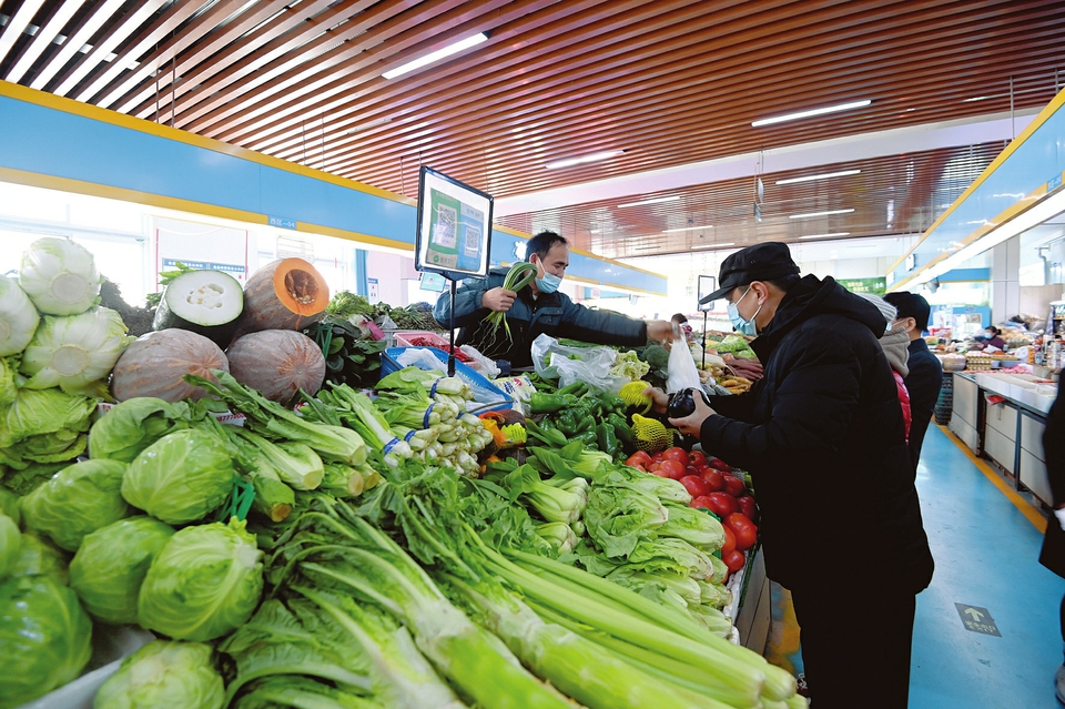 3月2日,太原市迎澤區(qū)惠民市場(chǎng)內(nèi),市民正在購(gòu)買蔬菜。據(jù)了解,該市場(chǎng)嚴(yán)格執(zhí)行疫情防控措施,目前市場(chǎng)內(nèi)菜價(jià)平穩(wěn)、貨源充足,有效保障轄區(qū)居民的生活需求。(記者阮洋攝)