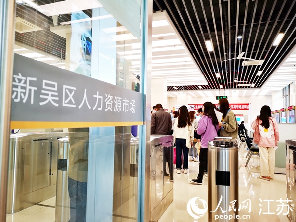 在無錫市新吳區(qū)人力資源市場,不少年輕人前來咨詢就業(yè)落戶事宜。儲(chǔ)霞攝