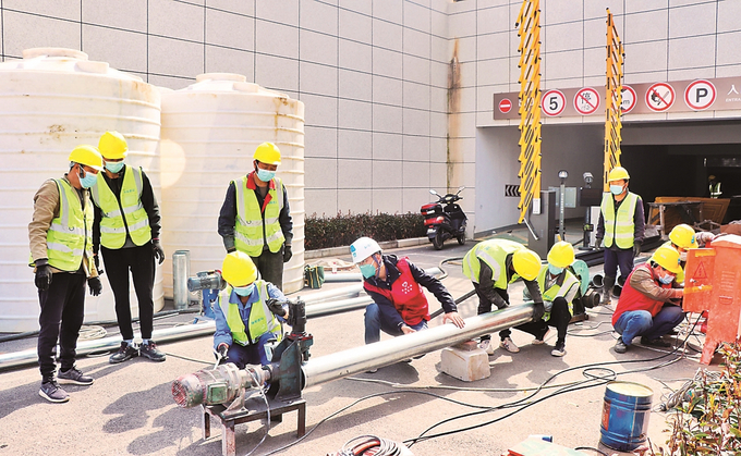 南京一疫情隔離點開展污水處理系統(tǒng)安裝工作。 通訊員 李天心 本報記者 范俊彥 攝