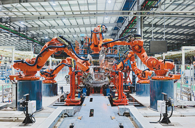 長(zhǎng)三院孵化的新能源汽車制造企業(yè)焊裝車間。浙江清華長(zhǎng)三角研究院供圖
