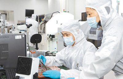 研究人員對(duì)柔性電子封裝線電性功能進(jìn)行測(cè)試。浙江清華長(zhǎng)三角研究院供圖