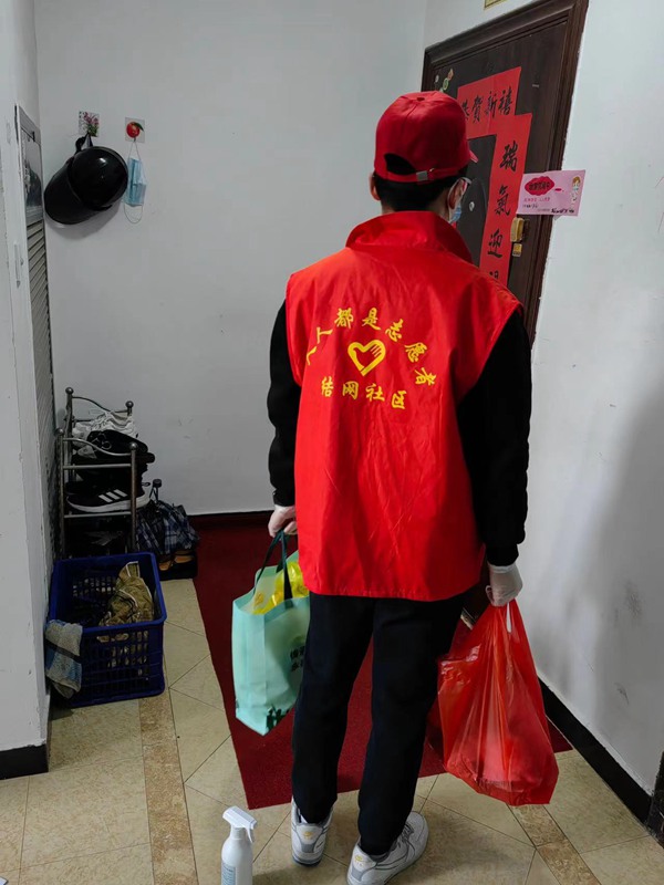 “我們有一個微信群,居家隔離人員如果有采購需求,可以列好清單發(fā)給群里的社區(qū)工作人員,第二天一早就有服務(wù)隊(duì)成員為其采購物品并送到家門口?!焙闈硎?,如果居家隔離人員有快遞要拿,他們也會幫著跑腿取件。“隔離病毒不隔離愛,希望通過我們的工作能為居民們帶去更多溫暖?!焙闈f。