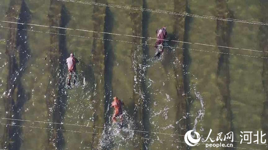 樂亭縣養(yǎng)殖戶正在打撈海參。 張偉攝