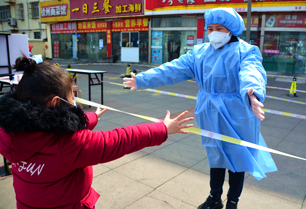 3月4日晚,連云港市海州區(qū)發(fā)現(xiàn)1例陽性人員,港城疫情防控阻擊戰(zhàn)就此打響。5日早上6點半,孫麗群接到參與核酸檢測服務工作的通知,第一時間將讀小學的女兒送到姐姐家照顧,轉頭便投入到疫情防控工作中去。相隔十幾天不見,女兒在做核酸檢測時見到了媽媽,思念的淚水瞬間“決堤”。