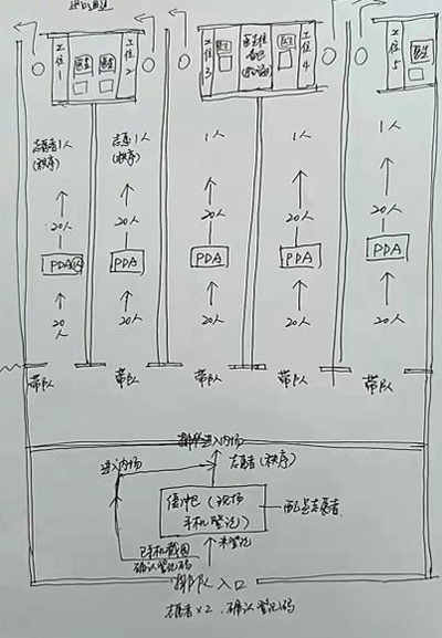 正如祁媛媛所說,靈感來源于實踐??恐B日來在檢測一線工作的體驗,祁媛媛不斷摸索,反復(fù)思考,根據(jù)1-6個工位的不同組合,手繪了6張檢測流程圖,上面清晰地標(biāo)注著檢測的動線、每個環(huán)節(jié)以及對應(yīng)的功能和注意事項,從而能夠直觀地指導(dǎo)居村提升檢測效率,讓檢測如“流水線”般高效順暢。