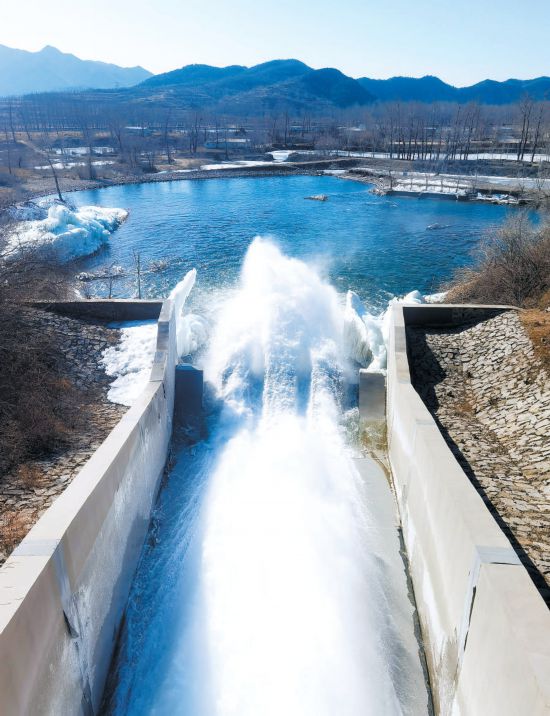 上圖:密云水庫經潮河輸水隧洞向潮白河生態(tài)補水。 張敏楠攝