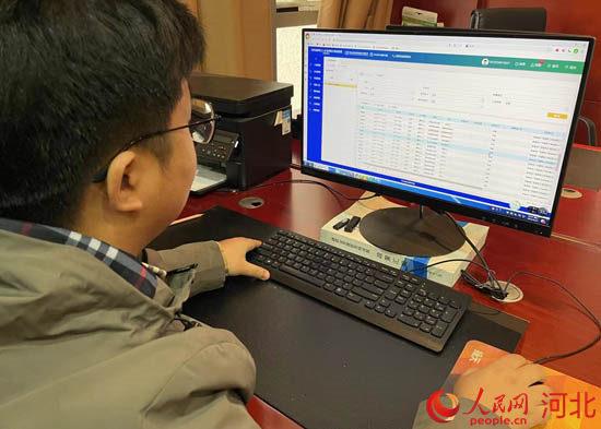 工作人員通過(guò)河北省建筑工人實(shí)名制和分賬制管理公共服務(wù)平臺(tái)監(jiān)測(cè)某項(xiàng)目農(nóng)民工考勤記錄。 人民網(wǎng) 林福盛攝