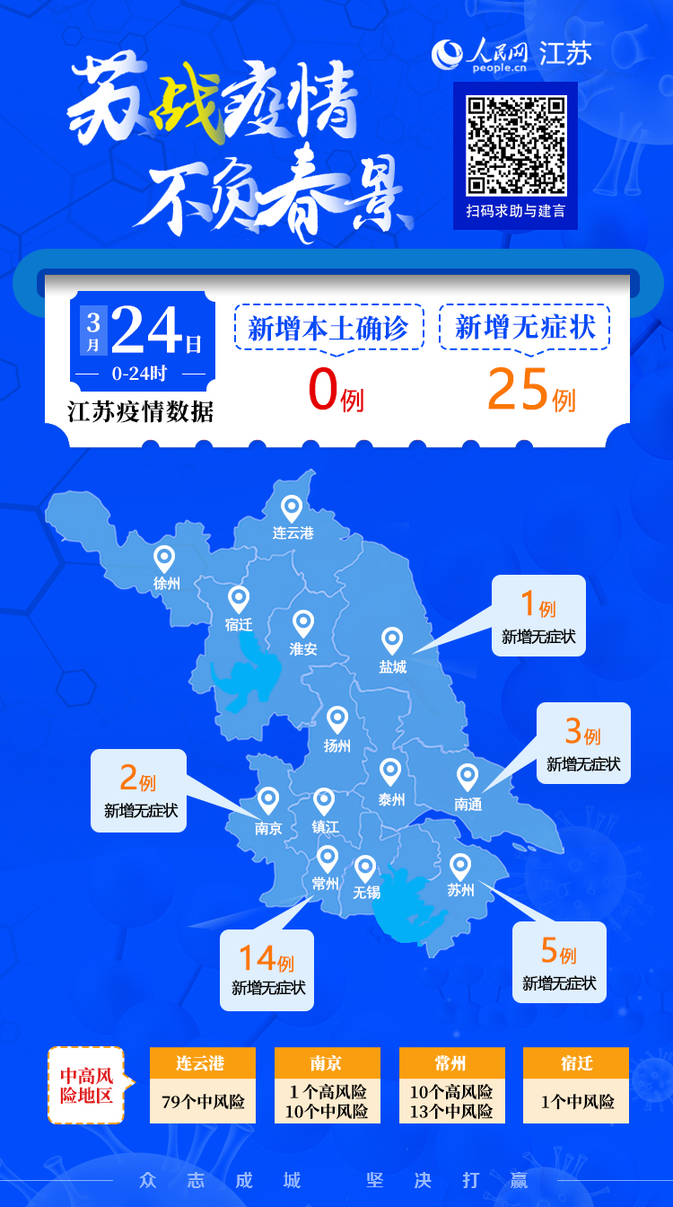 3月24日江蘇新增本土無(wú)癥狀感染者25例 涉及五市