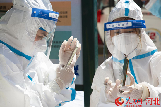 張振是滄州市人民醫(yī)院胃腸外科的護(hù)士。去年,他曾到藁城支援核酸采集工作。這一次,接到緊急任務(wù)通知后,有核酸采集經(jīng)驗的他再次與同事奔赴核酸采集點?!扒皫滋煳覀冊诤游鞅苯稚鐓^(qū)采集核酸,每人每天大概要采600余人的樣本?!彪娫捓铮瑥堈竦穆曇袈晕⑸硢?。