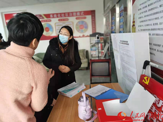 河間市的志愿者身穿紅馬甲在防控一線提供志愿服務(wù)。 李世文攝