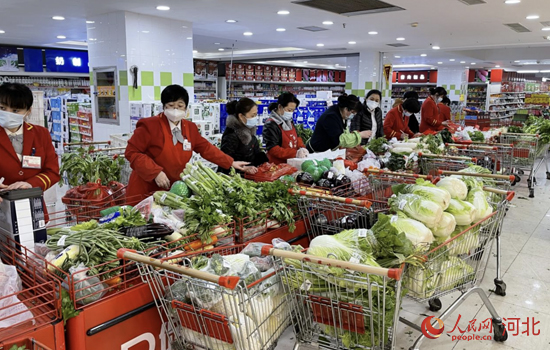 疫情防控期間,滄州市主城區(qū)日均調(diào)入蔬菜614噸、米面66噸、肉73噸、蛋34噸、水果57噸,基本保證了生活必需品市場運行平穩(wěn),貨源充足。此外,16家重點商超、連鎖超市每天1100余人在崗,組織快遞企業(yè)1000多人加入配送隊伍,重點商超、連鎖超市日均使用配送車輛200余輛,配送渠道更加暢通。針對居民需求趨于多樣化的情況,指導商家加大個性化供給,在套餐中加入了零食、飲料、日化等產(chǎn)品,為居民提供更多選擇。