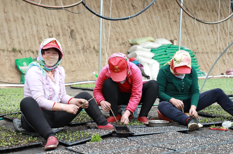 “這是剛長(zhǎng)成的辣椒苗,我們抓緊時(shí)間把它們移植到育苗盤里,一坑兒一苗兒?!闭谑炀氉龉さ?6歲村民薛愛(ài)說(shuō),“節(jié)令不等人,從3月初開(kāi)始張羅營(yíng)養(yǎng)土配比,然后播種、澆水、移植和管護(hù),到5月中旬進(jìn)入銷售高峰,我們就一直在這里忙。”