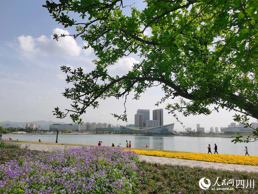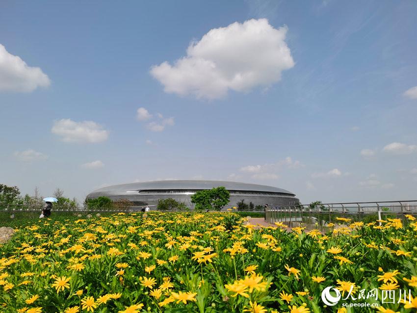 龍泉山脈綿亙遠(yuǎn)方,東安湖水蕩漾眼底,體育場館巍峨半空,花草樹木各展春姿。在湖光山色之間,有大量市民前來踏青賞春,順便欣賞著大運(yùn)會(huì)場館和火炬塔的風(fēng)采。
