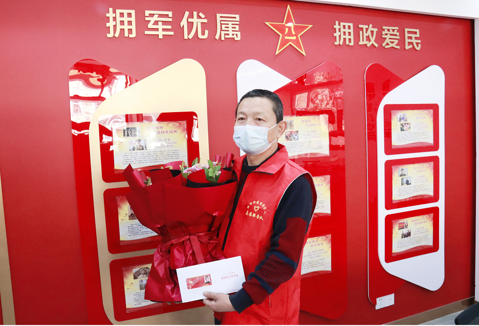 曾參加對(duì)越防御作戰(zhàn)的曹繼紅1988年退役,2021年退休后,熱心公益的他在退役軍人服務(wù)站進(jìn)行志愿服務(wù),榮獲2021年度迎澤區(qū)“最美退役軍人”稱號(hào)。為了褒獎(jiǎng)曹繼紅退役不褪色的精神,當(dāng)日,工作人員將退役軍人優(yōu)待證送到曹繼紅的工作崗位,負(fù)責(zé)本批次制證的郵儲(chǔ)銀行工作人員現(xiàn)場(chǎng)為曹繼紅開卡。