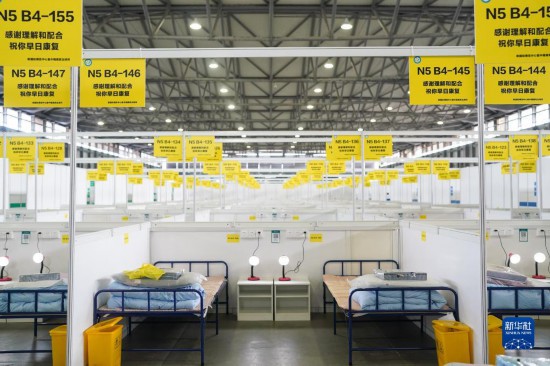 近日上海確診病例和無癥狀感染者增加。位于上海浦東新區(qū)的新國際博覽中心正緊張施工,將成為上海又一家收治輕癥和無癥狀感染者的集中隔離點,設(shè)計床位超過15000張。