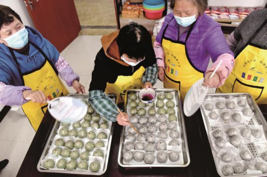 4月1日,嘉興市秀洲區(qū)新塍鎮(zhèn)虹橋社區(qū)請來轄區(qū)的幾位巧手奶奶一起做青團(tuán),送到志愿者手中,讓他們在“抗疫”一線也能吃上熱乎乎的時(shí)令美食。(馮玉坤)