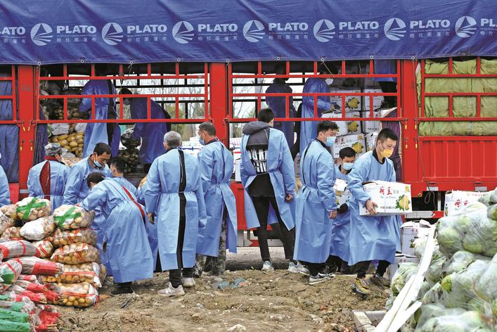 3月31日,掛著魯H、豫D、蘇H、皖B等地牌照的蔬菜運送車輛,陸續(xù)進入嘉興秀洲區(qū)臨時蔬菜批發(fā)市場。這些車上運來的蔬菜,經(jīng)過現(xiàn)場交易后,正源源不斷地送抵市民餐桌上。(馮玉坤)